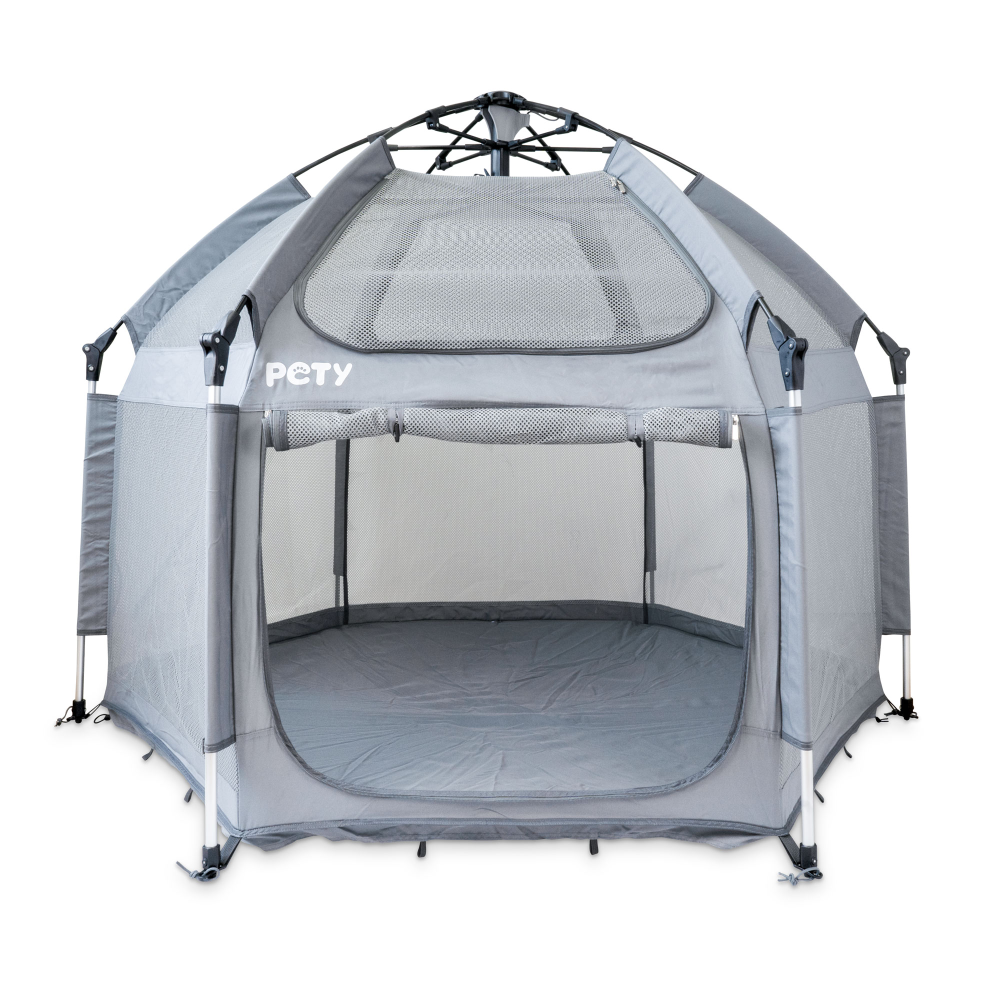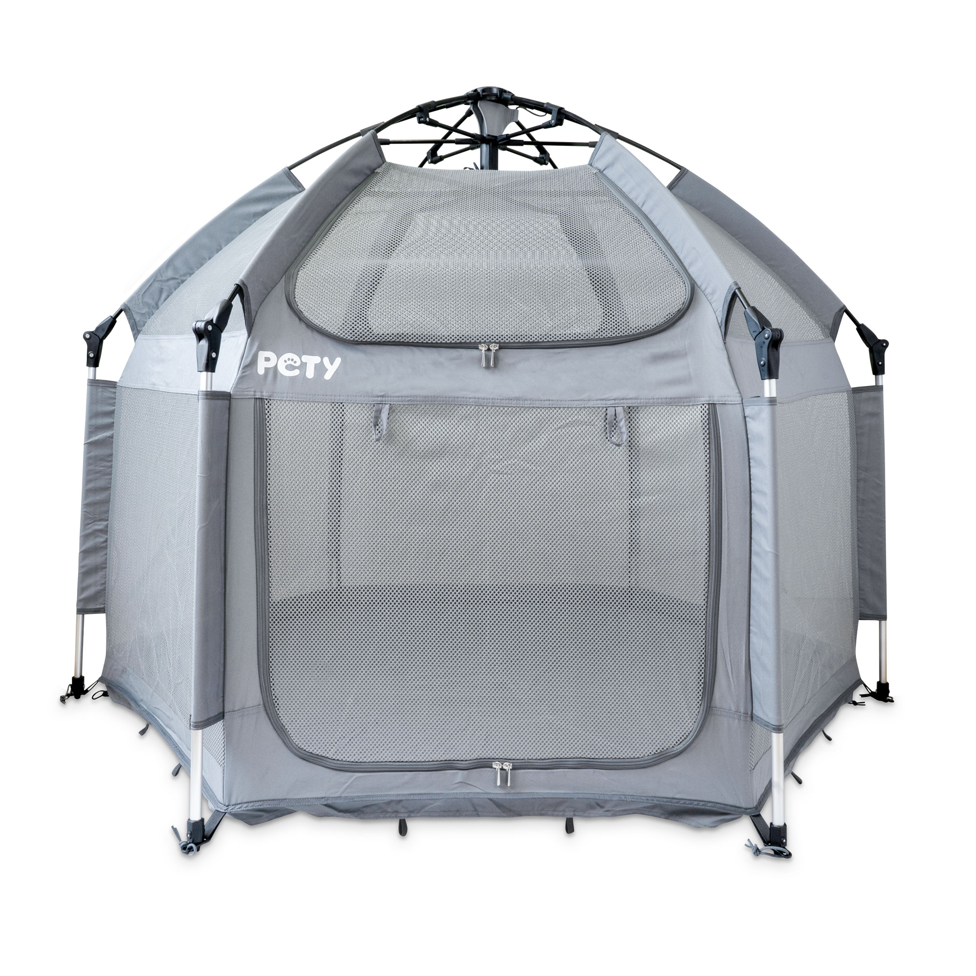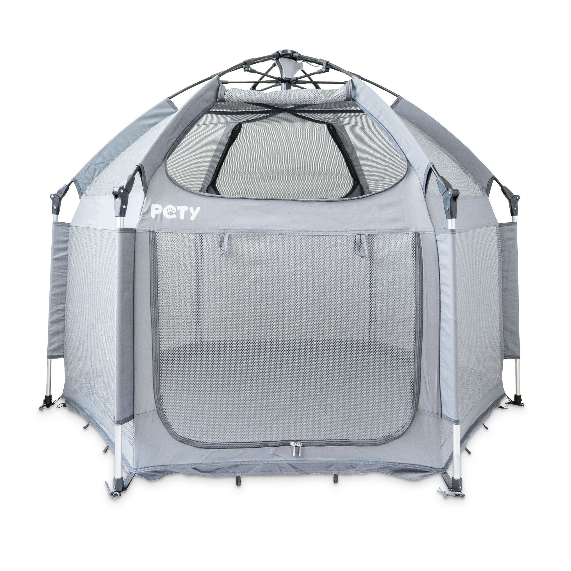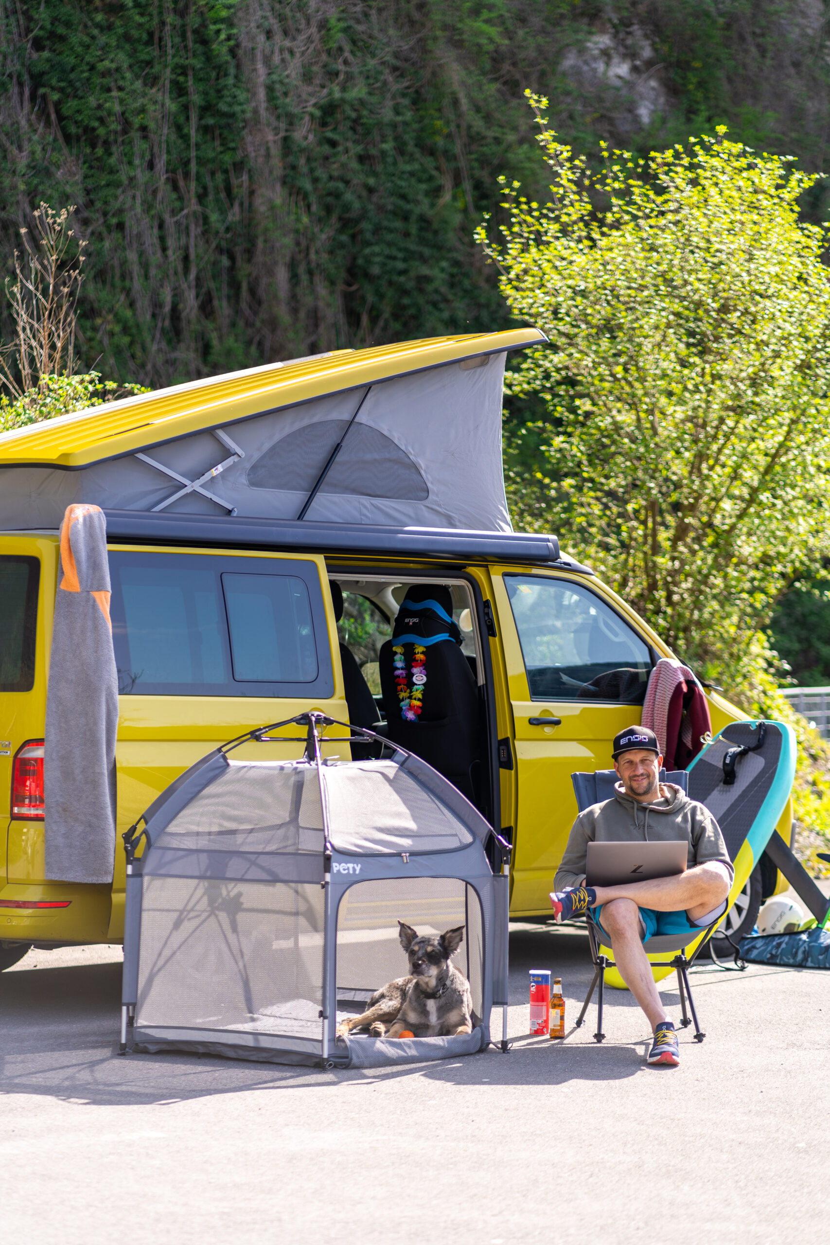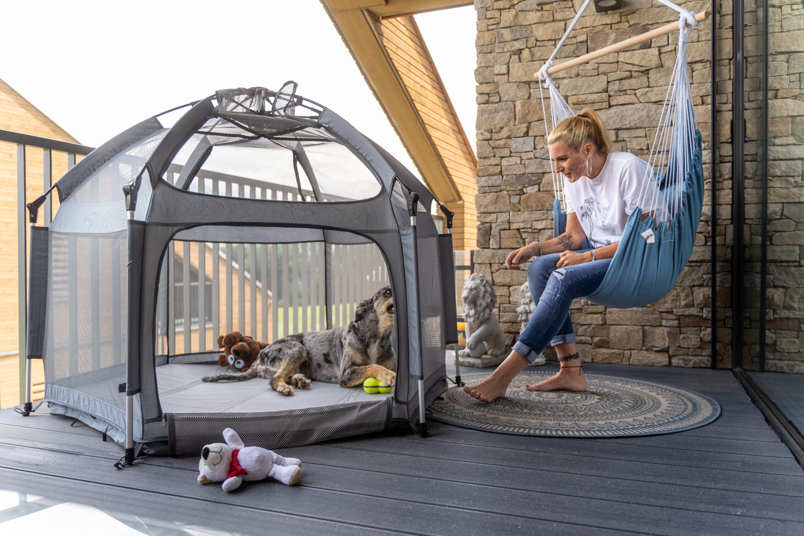 Il box per cani PETY si monta e si smonta in pochi secondi. Grazie al peso ridotto, il PETY è ideale per i viaggi. Con le pareti in rete, il PETY è ventilato in modo ottimale e hai sempre il tuo cane in vista.
