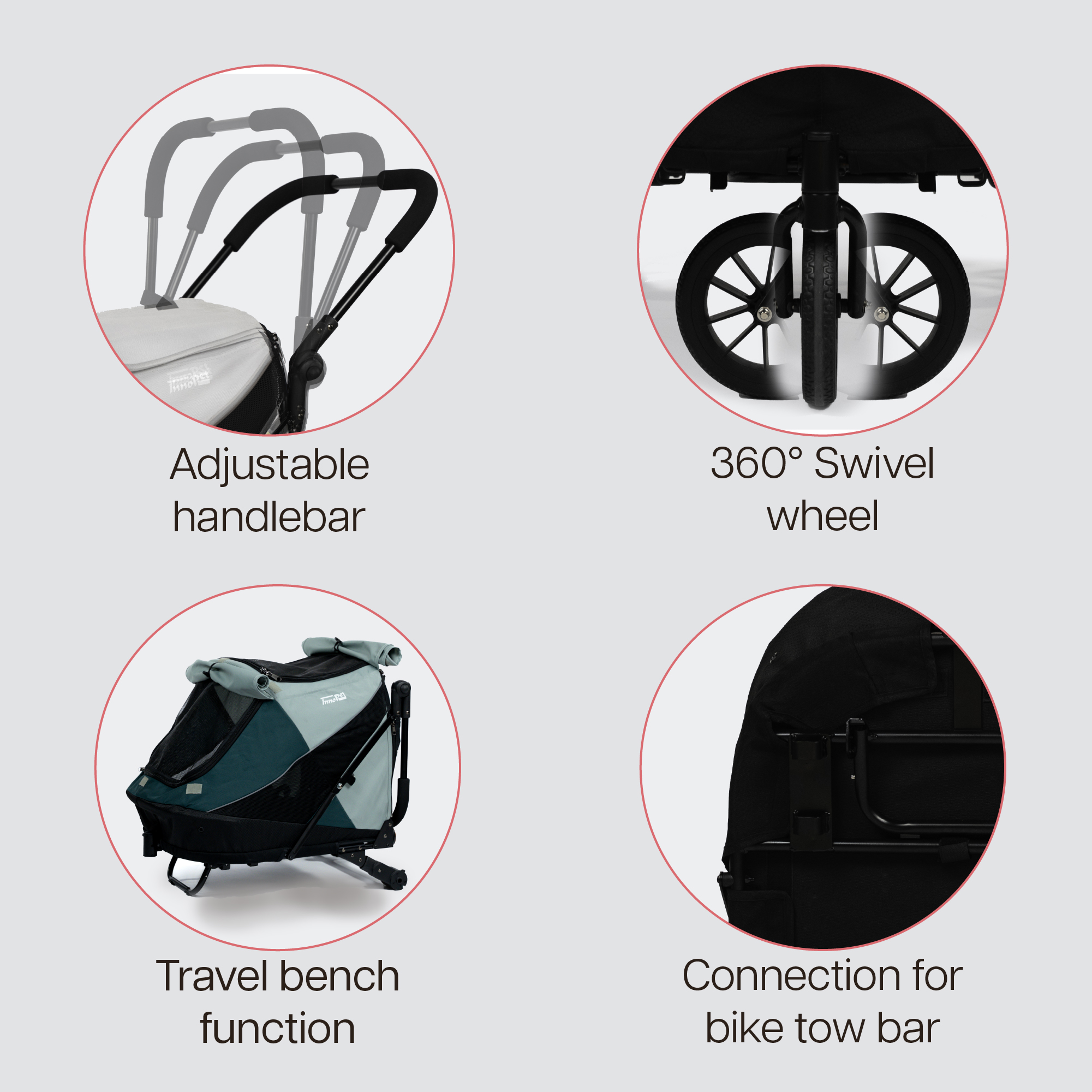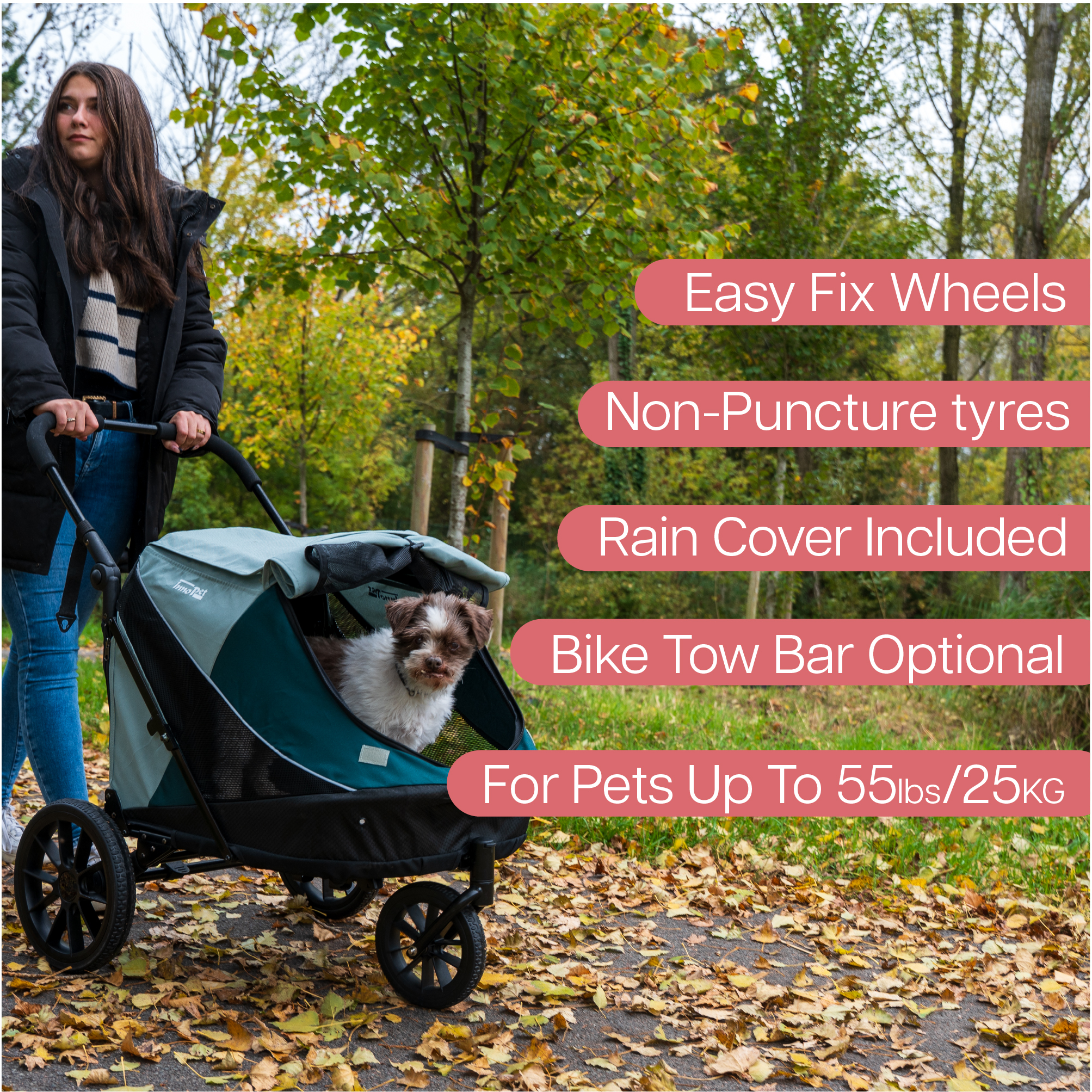 Il Passeggino per cani fino a 25 kg Noah di InnoPet® è la soluzione ideale per chi desidera un prodotto versatile e compatto: un unico modello che si trasforma in passeggino, rimorchio per bici e trasportino da viaggio. Pensato per cani di piccola taglia fino a 25 kg, il Noah offre comfort al tuo compagno a quattro zampe e praticità a te, in ogni situazione.